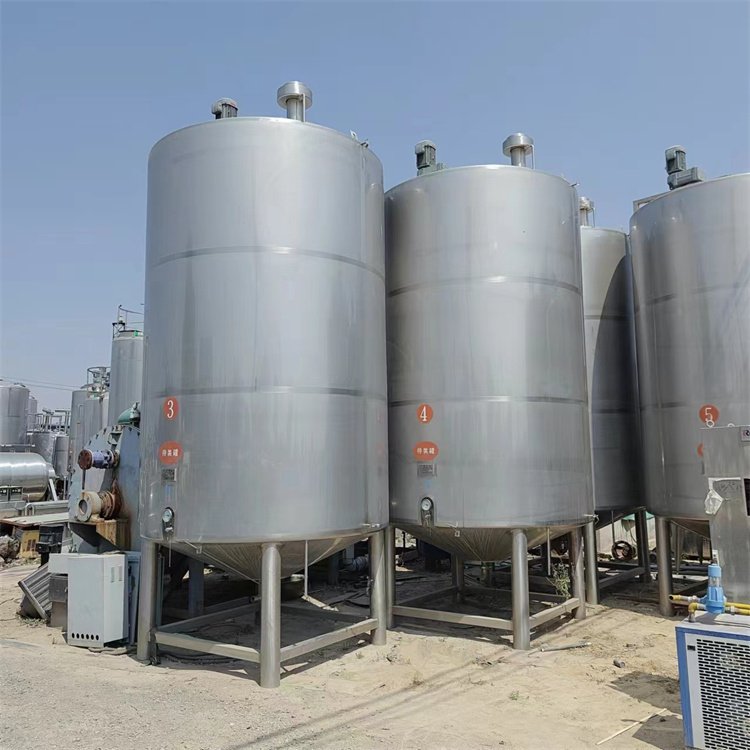二手不銹鋼儲罐由貯液容器、罐體、人孔機器設備、溫度儀、液位變送器、攪拌機械等組成。二手不銹鋼儲罐罐體的內膽都是采用304不銹鋼板材制成,內部的外表層經過拋光處理,內壁光滑,無凹凸不平的盲點,并且采用氬弧焊機接,接口處也很平整光滑;二手不銹鋼儲罐外層夾套是不銹鋼板材米諾板,和罐體內膽焊接組合成蒸汽室.二手不銹鋼儲罐設備蒸汽口處配有停止閥門、蒸汽疏水閥等。