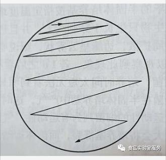 其實(shí)在微生物劃線接種中,無(wú)論是試管斜面劃線接種還是平板劃線接種,都會(huì)用到“之”字劃線。“之”字劃線的要領(lǐng)是:往復(fù)不間斷劃線,但是又不與劃過的路線重復(fù)或重疊。如果菌量比較大,就可以劃得更為密集或者增加一塊平板繼續(xù)“之”字劃線(即連續(xù)劃兩塊板)。“之”字劃線一般適用于分離本身在此培養(yǎng)基上單一且黏性較大的菌類或可疑菌落的純培養(yǎng)。操作如下圖所示。